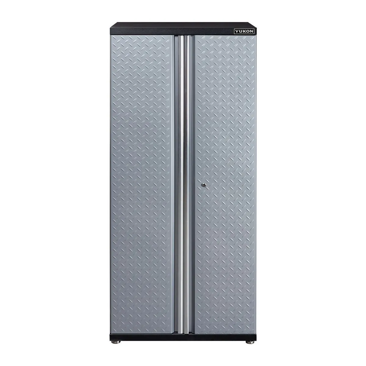 • The YUKON™ 30 in. x 72 in. Garage Cabinet is part of a complete shop storage system designed to organize and free up space in any area. Constructed with powder coated steel for a durable, smooth finish and diamond plate steel doors for a professional look. With a rear power access port for cords and cables and a weight capacity of 450 lbs. this garage cabinet provides a generous storage space making it the ideal solution for all your storage demands.